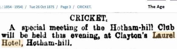 A special meeting of the Hotham-hill Club will be held this evening, at Clayton’s Laurel Hotel, Hotham-hill.