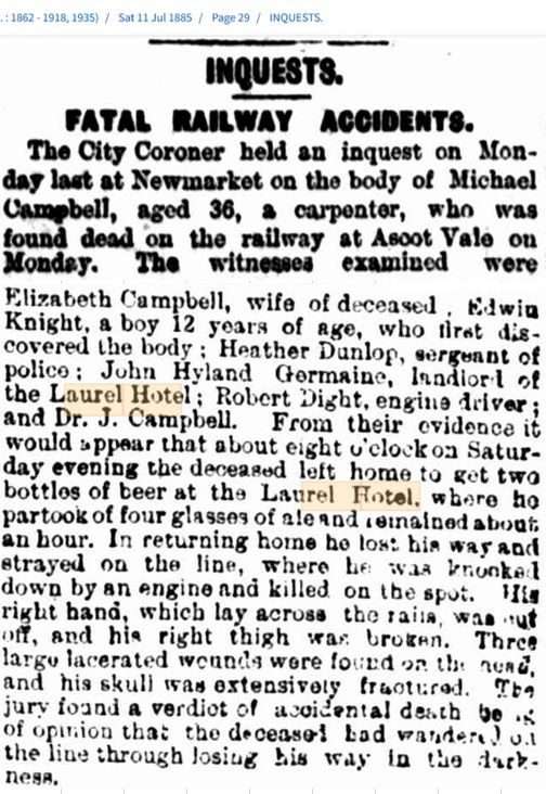 1895 | 1895 | Henry King – Laurel Hotel | source: Sands & McDougall directory, transcribed by Anne Cronin | |