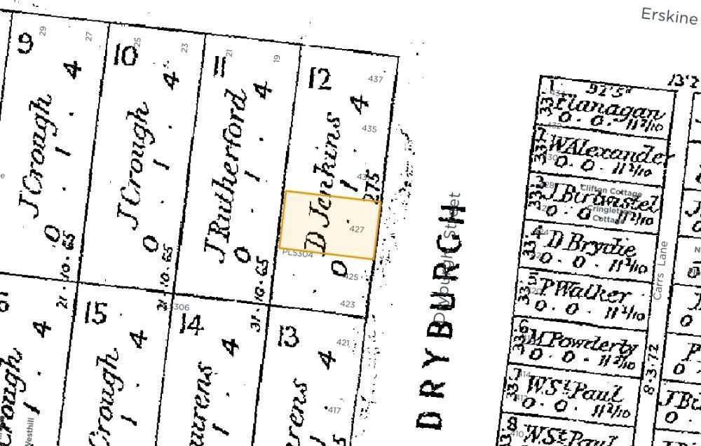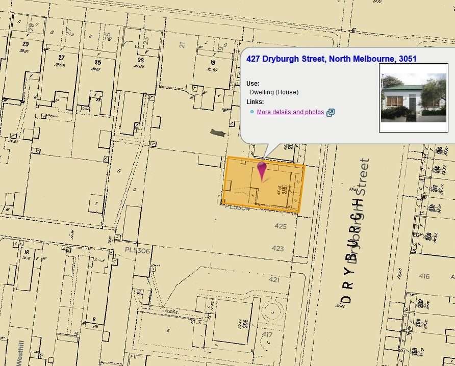 Previous Address | 427 was previously known as 215 Dryburgh Street, North Melbourne | Source: from the 1895 MMBW map |