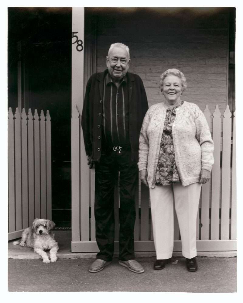 Photograph taken by Viva Gibbs, long time local resident and artist of Brian & Jessie Barker, also lifelong residents of West Melbourne standing outside their home on Hawke Street in the late 1970s.